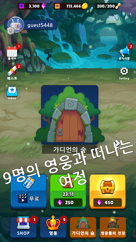 9명의 영웅이 당신과 여행을 시작합니다. 영웅은 마스터와 가디언이 되어 전투에 참가할 수 있습니다.