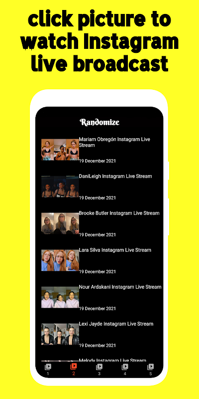 * Randomize는 최신 Instagram 라이브 스트림을 제공합니다.