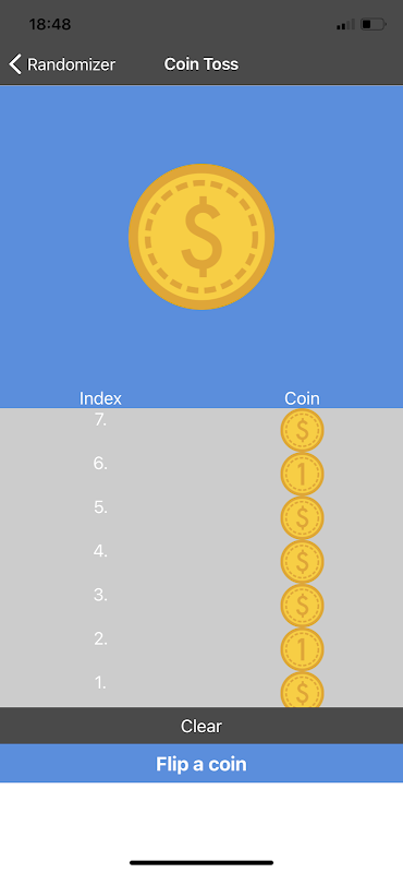 앞면 또는 뒷면의 두 가지 무작위 옵션 만있는 동전 던지기