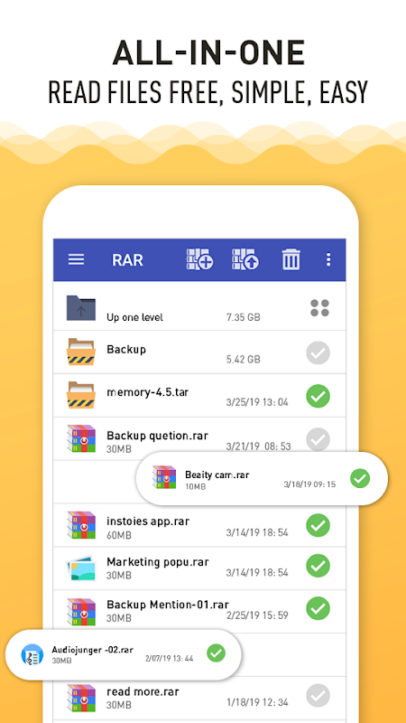 RAR Reader, RAR File Extractor & Unrar, Unzip is an all-in-one, original, free, simple, easy and quick compression program, archiver, assistant, extractor, manager and even a basic file explorer.