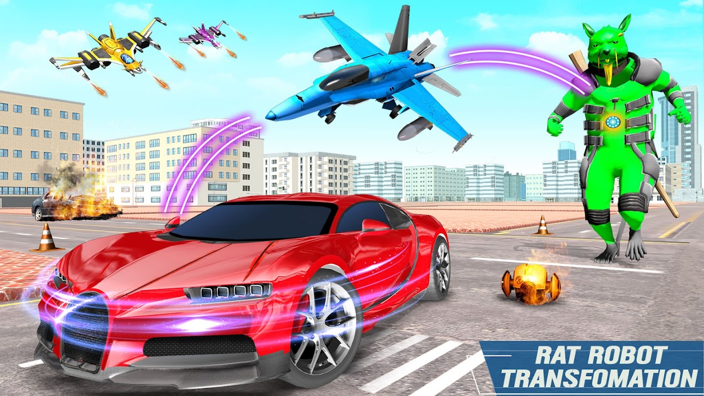 We are pretty sure you have played many multi robot, robot transform shooting, and car transformation games but we assure you this rat robot car transformation game will give you more robot fighting games excitement, and much better graphics than other best robot transform games. Get the Rat Robot Hero in robot shooting games: muscle car robot transform games as car transform robot warrior in mega robot hero rat transform car robot transformation games. Now is the best time to explore the unseen entertainment in animals robot games and rat robot transformation games: car robot war and real cars and robot shooting games 2021. Rat Robot Car Game - Robot Transforming Games and rat robot bike game gives you thrilling robot game of future city battle. You have to make an invasion plan for enemy robot car fighting games to save the city by transform rat into robot. Robot transformation games are usually easy to play you can easily transforme rat robot by a single tab into a car robot. Get into the wars robot games to enjoy every aspect of this robot transform rat robot transformation game. This future rat robot car fighting cars and robots game ensures to stand top among the animals robot games 2021 that summarize the wars robot games, robot soldier games, and robot car transforming games 2021.
