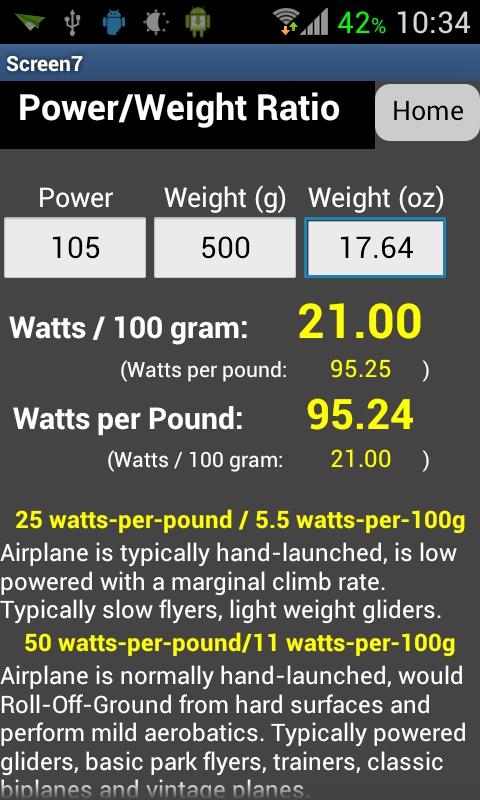 지금 또한 RC의 단위 변환, 날개와 입방 날개 로딩과 배터리 중량 에너지 밀도.
