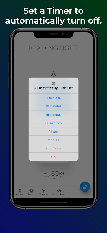 ✔️️ 배터리 걱정없이 자동 종료를 구성 할 수있는 타이머.