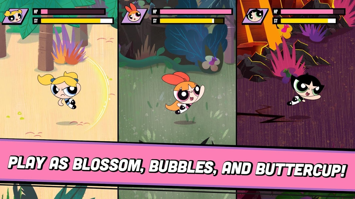READY, SET, MONSTERS의 번개처럼 빠른 전투에서 Blossom, Bubbles 및 Buttercup을 도와 괴물 같은 적을 완전히 물리치세요!
