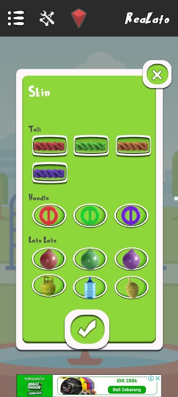 - 사용자 지정을 위한 많은 스킨, 플레이어는 6개 이상의 조합으로 로프, Lato Lato 및 핸들러를 변경할 수 있습니다.