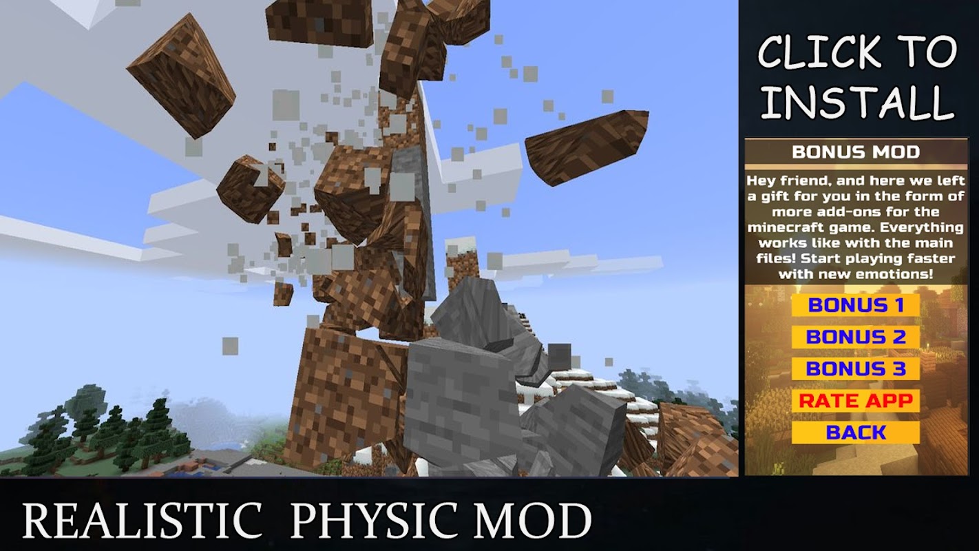 Physics in Minecraft Pocket Edition sometimes looks completely unrealistic. I would like to fix this state of affairs, with which the realistic Physics mod will help. There will be more updates in the future.