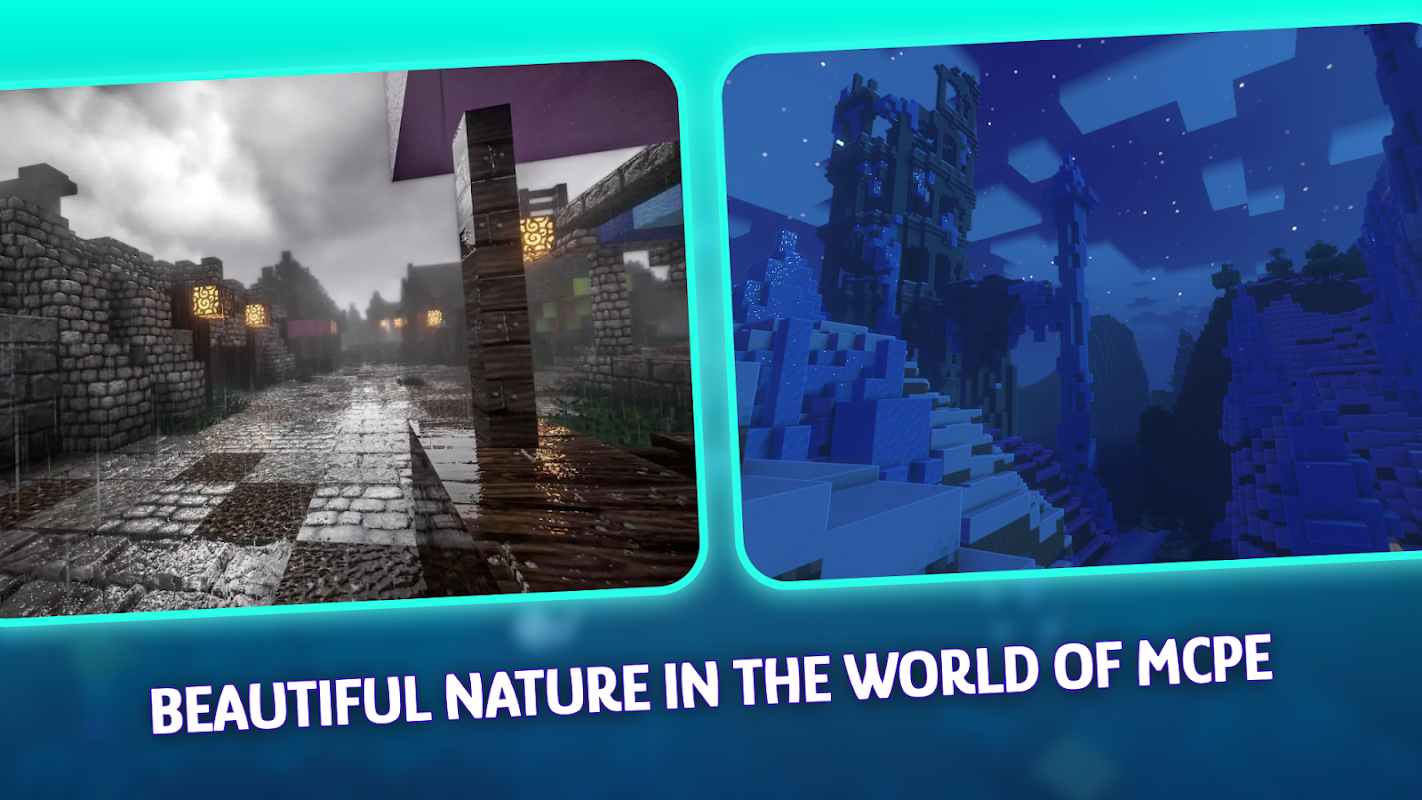 우리 모두는 다양성과 색상의 아름다움으로 날씨가 기뻐하고 하늘 ☁이 살아 있고 밝고 물이 흐르고 무지개의 모든 색상으로 태양 광선을 차단하는 고품질의 아름다운 사진 ✨을 좋아합니다. 집 옆 개울처럼 - 애드온 MCPE용 사실적 셰이더 모드는 실제 자연의 모든 아름다움을 Bedrock 세계🌏에 추가하여 Pocket Edition 앱에서 이 모든 아름다움을 선보이도록 설계되었습니다. RTX 이 애드온의 텍스처는 게임의 많은 블록을 변경했으며 현실 그래픽은 매혹적입니다🔥! Mod Realistic Shader는 Mincraft 게임🎮에 있어야 하는 일종의 애드온입니다.