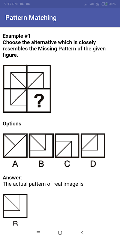 패턴 완성 퀴즈, 종이 접기 n 커팅 퀴즈, 미러 이미지 퀴즈, 임베디드 피겨 및 이미지 퀴즈.