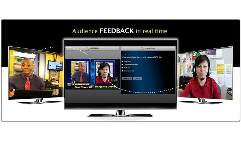ARES Interactive Media is a unique resource that takes TV channels, visual radio stations, Web TV, and other formats such as on-line teaching to a new level of audience engagement with cost-efficiencies not possible until now. Because ARES has data capture capabilities, users will have stored data from which to make key programming decisions in content direction and metrics for audience measurement in both on-air and online broadcasts.