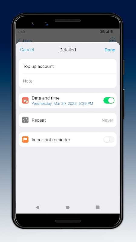 Android로 전환했지만 iPhone에서 익숙한 것을 찾을 수 없습니까? 이 응용 프로그램은 iOS에서와 동일한 미리 알림을 사용하는 데 도움이 될 수 있습니다. 모든 것이 매우 간단하고 명확합니다.