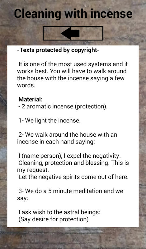 - The application has some sections with basic information to differentiate between negative spirits or evil spirits.