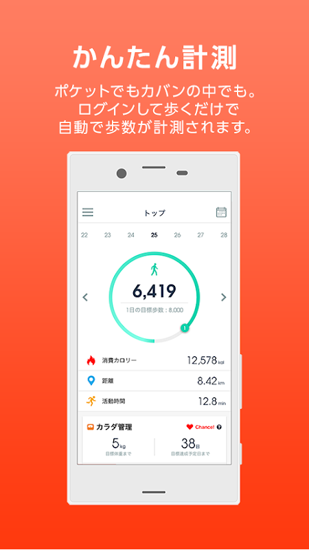 톱 화면과 그래프로, 당신의 걸음수나 소비 칼로리를 알기 쉽게 표시됩니다.