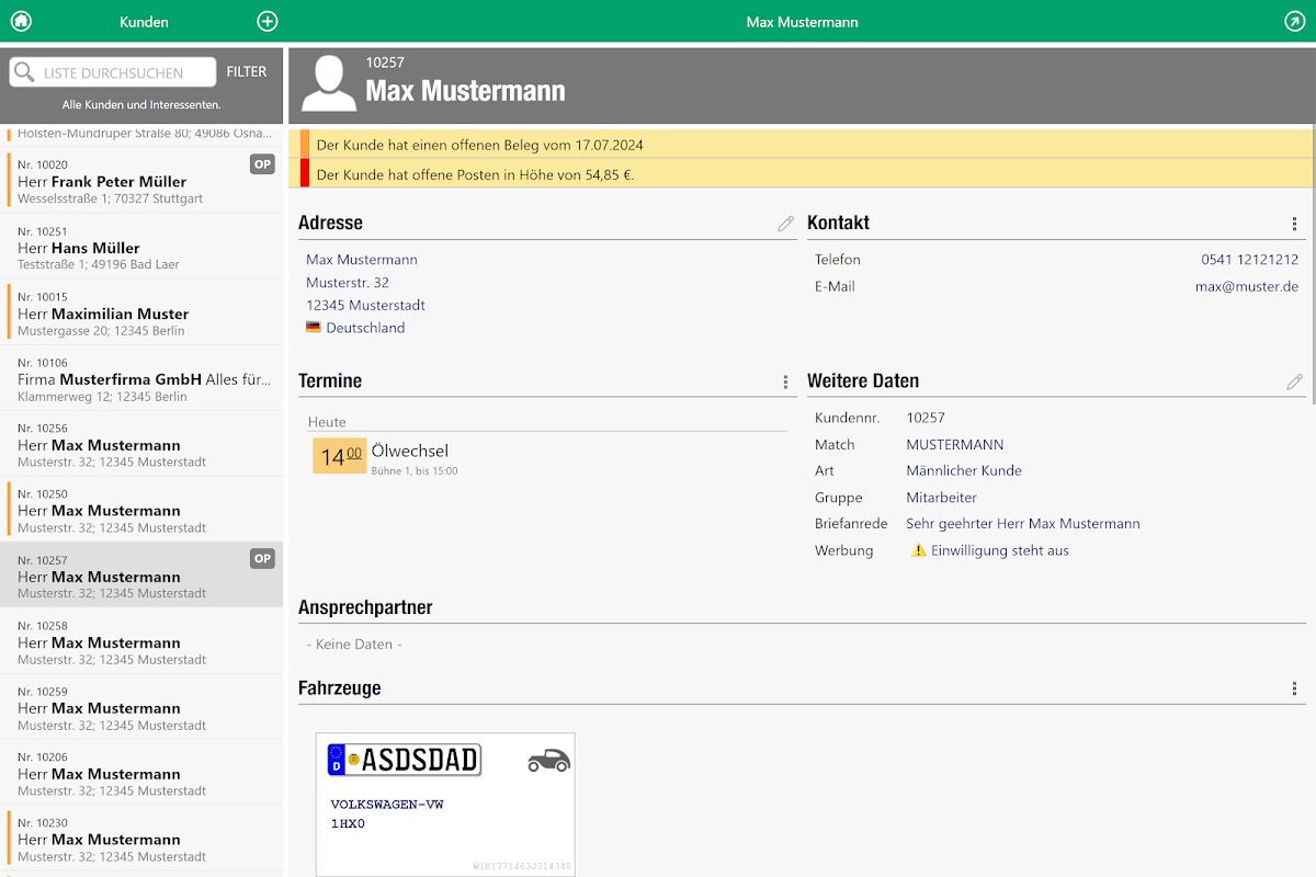 스마트 폰 또는 태블릿을 사용하여 고객, 차량, 고객 문서 또는 작업장 캘린더와 같은 작업장 데이터에 직접 액세스하십시오. 품목 데이터, 작업 및 설정 값, 검사 데이터 및 수리 지침에 대한 정보를 찾아서 편집하십시오.