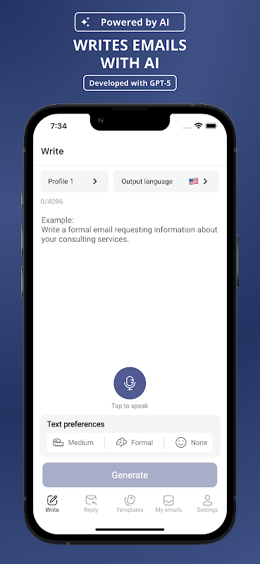 ✍️ 즉시 작성: 아이디어를 몇 단어로 작성하면 완성된 이메일을 받아 바로 전송할 수 있습니다.