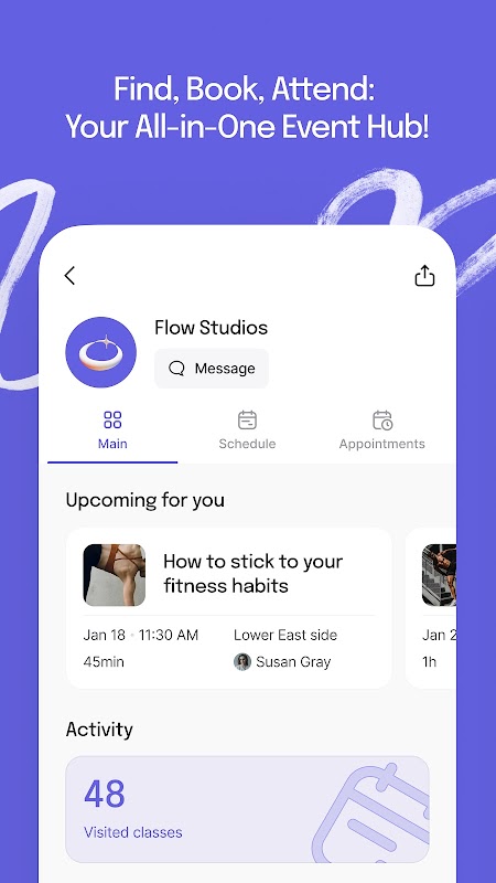 Reset Studio 앱을 사용하면 직접 수업을 예약할 수 있습니다