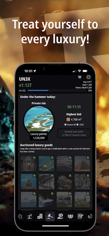 수익을 창출하고, 광업 운영 및 건물을 확장하고, 뉴스의 헤드라인을 장식하여 지위와 명성을 얻거나, 본사를 업그레이드하여 경쟁에서 앞서 나가십시오.