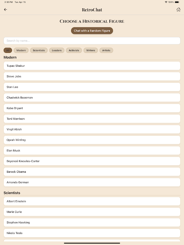 RetroChat을 사용하면 학생과 평생 학습자가 유명한 역사적 인물과 몰입형 일대일 대화를 나눌 수 있습니다. 학교 과제를 수행 중이거나 단순히 과거에 대해 궁금한 점이 있거나 RetroChat은 역사를 완전히 새로운 방식으로 생생하게 만들어줍니다.