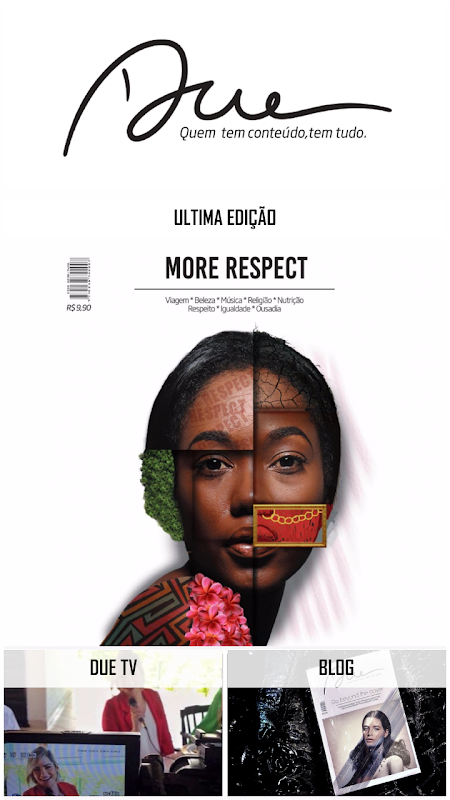 Esse novo formato fará com que o nosso contúdo esteja cada vez mais perto de você, sempre ao seu dispor, em qualquer smartphone ou tablet, com a mesma qualidade leve e informativa, abordando Moda, Sociedade, Estilo de Vida, Viagem, além disso, a vantagem de ler as últimas edições da Revista DUE.