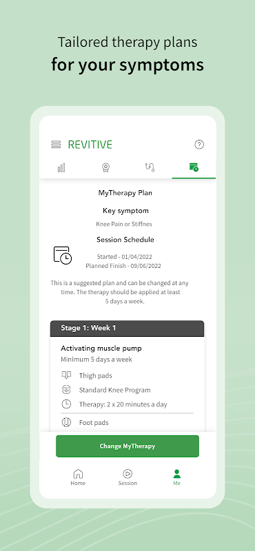 리바이티브 메딕 코치는 전기 근육 자극(EMS)을 사용하여 혈액 순환을 증가시켜 다리와 발의 근육을 자극합니다. 메딕코치와 연동된 앱을 이용하면 다리 증상에 맞는 치료 계획을 세울 수 있습니다. 가상 치료 코치인 Rosie는 귀하가 순조롭게 치료 세션을 최대한 활용하도록 도와줄 것입니다.
