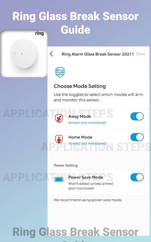 센서를 기본 모드로 두면 배터리를 더 오래 사용할 수 있습니다. 이 경우 연결된 링 알람 시스템이 재택 또는 외출 모드일 때(즉, 시스템이 "무장"). 항상 유리 깨지는 소리를 듣도록 센서를 구성할 수 있지만 이렇게 하면 배터리 수명이 단축됩니다.
