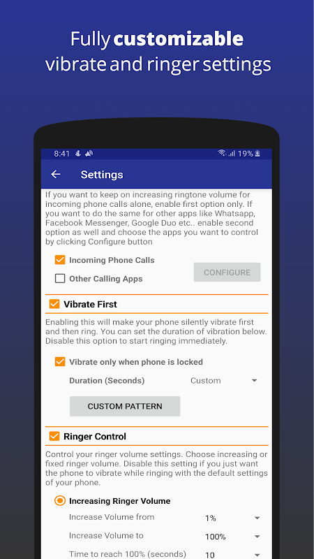 전화기에 이미 "증가 벨소리"기능이있는 경우 벨소리 마스터와 충돌하지 않도록 비활성화해야합니다.