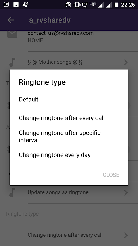 -> 모든 통화 후 변경 : 모든 통화 후 벨소리가 자동으로 변경됩니다 (Android 9부터이 기능은 Google Play 스토어의 엄격한 개인 정보 보호 정책으로 인해 특정 연락처에 대해서는 작동하지 않지만이 기능은 기본 연락처에 계속 작동합니다).