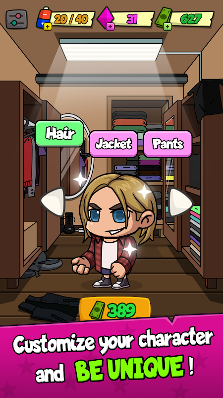 이 게임의 펑크 뮤지션은 노숙자 시뮬레이터와 비슷하지만 반전이 있습니다. 록스타가 되는 꿈을 실현하게 됩니다! 방을 장식하고, 다양한 퀘스트를 완료하고, 음표를 탭하여 기술을 향상하고, 메탈 음악의 세계에 빠져보세요. 레벨이 올라가면 새로운 도전 과제, 도구, 흥미로운 기능이 열립니다.