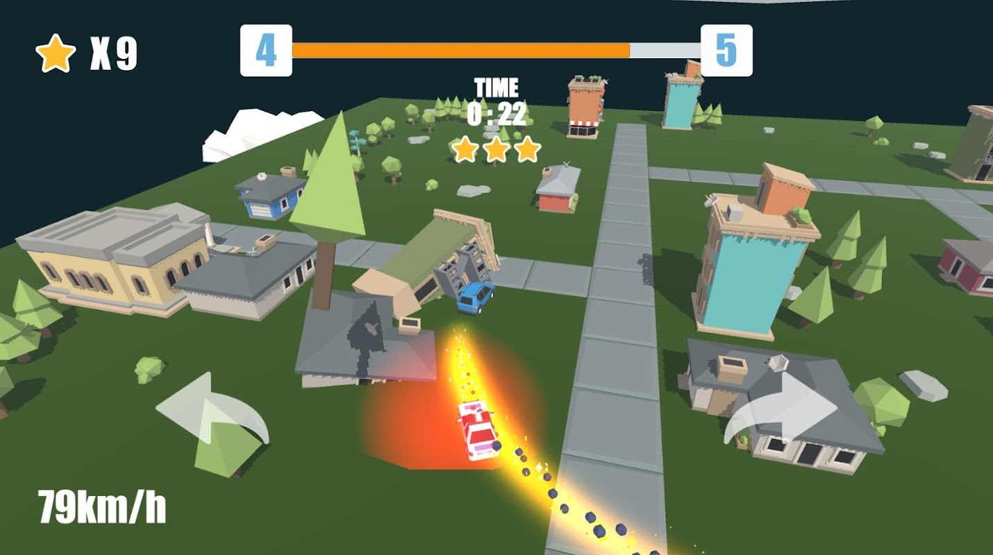 차를 건물에 들이박고, 건물들을 터트려버리세요.쫓아오는 경찰들을 요리조리 피해보세요!