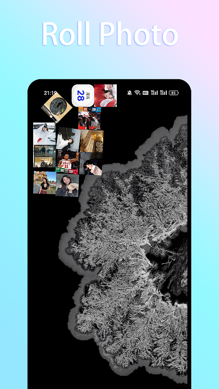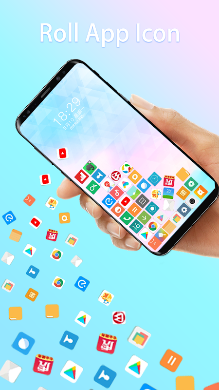 롤 아이콘 장난: 재미있는 동적 배경화면이 앱 아이콘과 사진을 굴립니다.