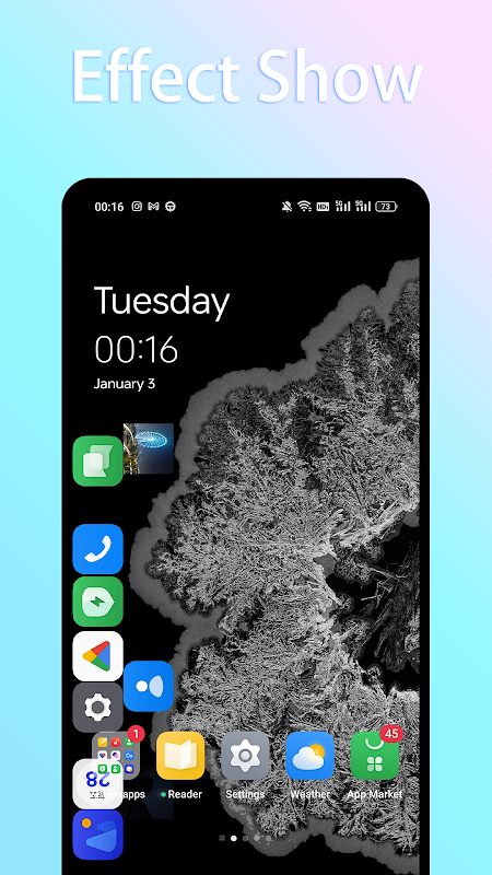 라이브 배경화면으로 설정하면 런처를 흔들 수 있습니다!!! 정말 대단해요!!