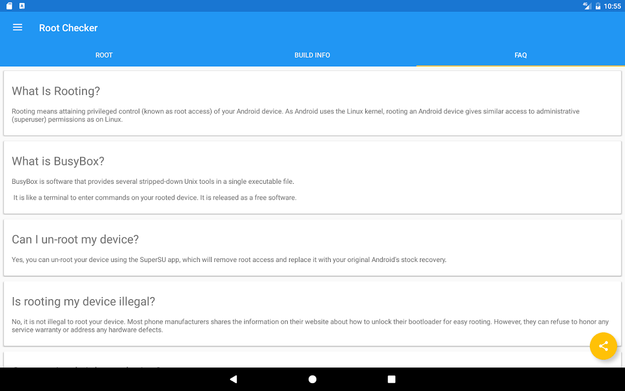 The app lets you find if Busy Box is installed on your device. Along with this, it displays the Busy Box status.