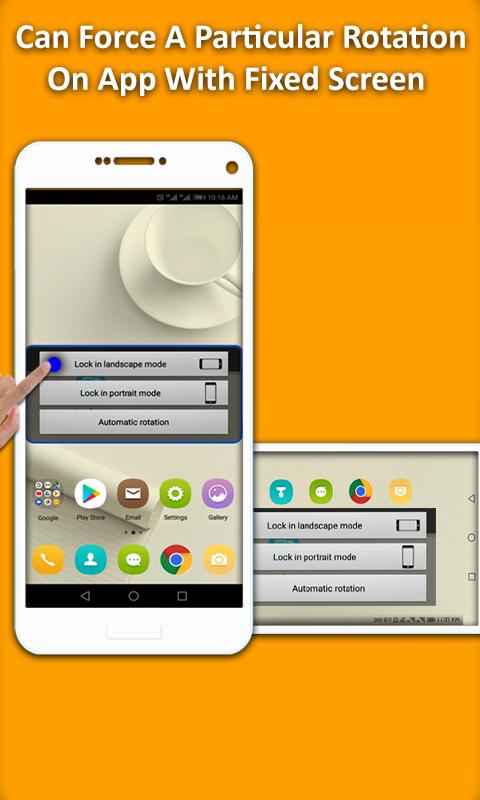 화면 방향 제어는 네 방향 모두에서 세로, 가로, 세로 및 역 가로를 자유롭게 제어합니다. 자동 회전을 활성화하고 모바일 장치에서 4 방향의 실제 방향을 제어하십시오. 화면 회전 제어 앱을 사용하여 세로에서 가로로 회전 가능한 틸트가 가능하여 네 방향 모두에서 쉽게 회전 할 수 있습니다. smooth은 화면 회전 제어에서 원하는 방향으로 전체 화면 회 전자를 제어합니다. 기울기 방향으로 전화를 즐길 수있는 모든 제어 기능을 갖춘 네 방향 자동 회전. 원하는 방향으로 휴대 전화를 사용하여 원하는 회전을 적용 할 수 있습니다.