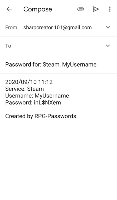 • 생성 된 비밀번호 및 기타 데이터를 이메일 클라이언트로 보내 이메일 주소로 보냅니다.