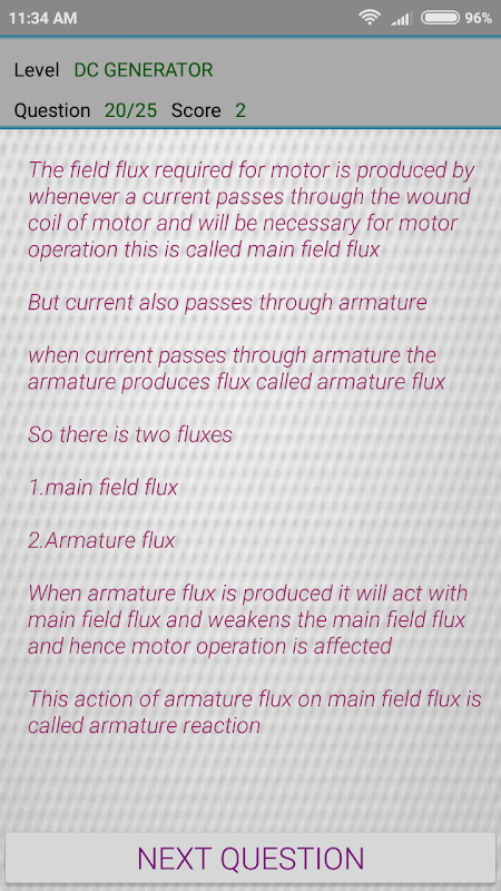 Basic Electrical Engineering Quiz (MCQ) is a Quiz based Electrical awareness application to learn the basic concepts of electrical and electronics. About 2000+ selected questions to increase your knowledge in electrical and electronics (include questions from electrical machines - DC motor,dc generator,ac motor, ac generator, transformer, electricity, power management etc) . These questions are very useful for competitive exams as well as for technical interviews(electrical interview questions). Electrical Quiz app is well organized with topics such as Basic Electrical Engineering, Basic Electronics Engineering,dc motors, dc generators, transformers,Digital electronics, Analog circuits, Electromagnetism, Networking etc.