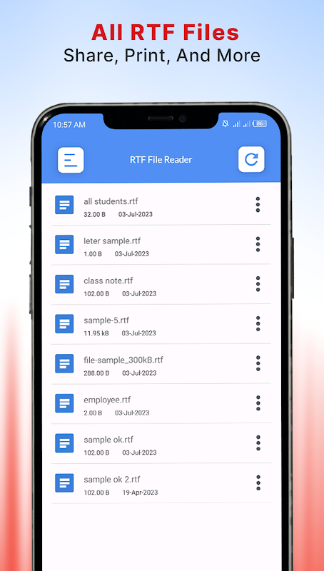 파일 리더는 RTF 보기 앱 내에서 유지되는 적절한 순서로 지원되는 모든 형식 파일을 표시합니다. 문서 리더 앱은 rtf 앱을 열 때 읽기 가능하고 지원되는 문서 가용성을 표시합니다. 서식이 풍부한 형식의 문서는 사용자가 페이지나 RTF 파일을 읽는 데 도움이 되도록 특별한 옵션으로 정렬됩니다.