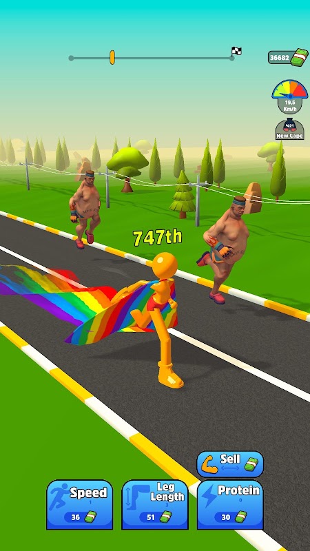 적을 물리치고 더 강해지고 키가 커지고 빨라져 가장 빠른 사람이 됩니다.