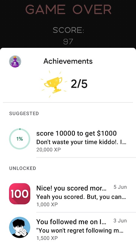 "Runapple"은 플레이어가 더 많은 것을 위해 계속해서 돌아올 수 있도록 설계되었습니다. 다양한 게임 내 도전 과제와 성과를 통해 항상 노력해야 할 새로운 이정표가 있습니다. 특정 기간 동안 생존하거나, 정해진 수의 상자를 수집하거나, 높은 점수를 달성하는 등 "Runapple"은 게임 플레이를 신선하고 흥미롭게 유지하기 위한 다양한 목표를 제공합니다.