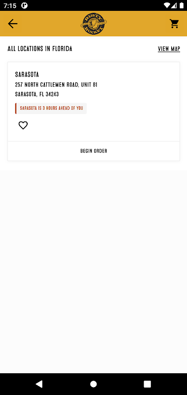 1) 앱을 시작하고 가장 가까운 Rusty Bucket을 찾으십시오.