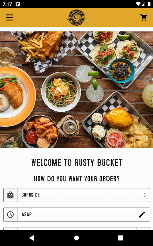 러스티 버킷 모바일 주문에 대한 쉬운 응용 프로그램 : 찾아보기 메뉴, 주문, 지불 및 픽업.