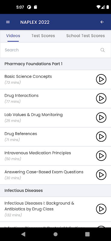 RxPrep Video Lectures 앱은 이동 중 비디오 강의와 함께 콘텐츠 검토를 제공합니다.