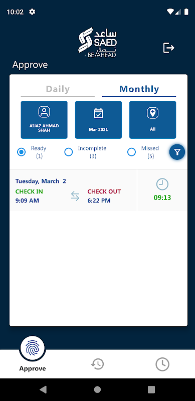 부하 직원의 일일 출석 요청을 검토하는 SAED Supervisor 앱