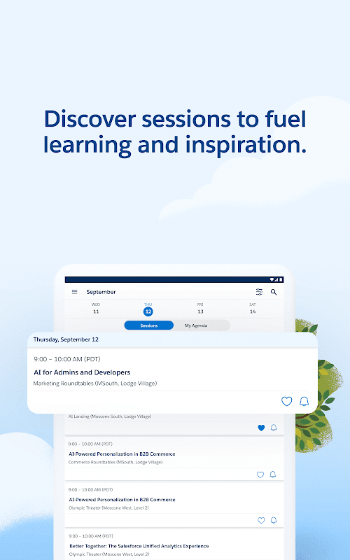 Salesforce 이벤트 경험을 최대한 활용하세요. 이 앱을 사용하여 완벽한 일정을 만들고, 현장 연결을 설정하고, 중요한 이벤트 정보를 얻으세요.