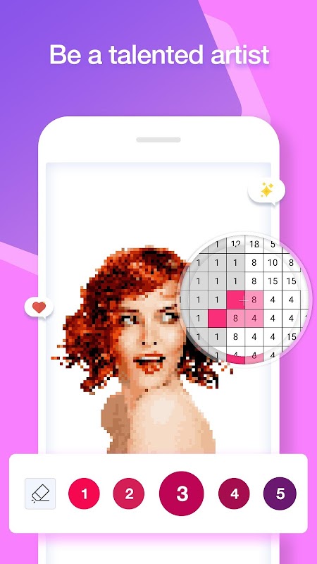Creating digital masterpieces is simpler than ever with our number coloring games. Even if you are a beginner and are not good at art, you will be surprised with what you create in this color number game.