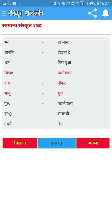 이 앱에서 우리는 힌디어와 영어로 산스크리트어의 주요 단어의 의미를 말하려고했습니다. 이 응용 프로그램은 매일 유용한 단어의 힌디어와 산스크리트어 의미를 알려줍니다. 이 사전이 당신에게 유용하기를 바랍니다.