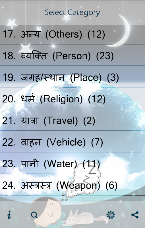 이 응용 프로그램은 영어와 힌디어로 꿈의 의미를 가지고있다.