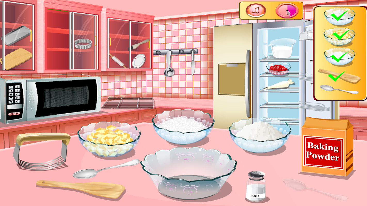 오늘 주방에서 재능 있는 사라와 함께 최고의 스콘을 만드는 방법을 유명한 셰프에게 배워보세요. 그녀는 부엌에 스콘을 두는 것을 좋아합니다... 친구들이 뜨거운 음료를 마시러 올 때 편리합니다. 이제 소매를 걷어 올리고 앞치마를 두르고 사랑스러운 셰프 사라와 함께 베이킹 세션을 시작합니다. 올바른 주방 도구와 필요한 재료를 찾기 위해 주방 캐비닛을 검색하는 것으로 시작한 다음, 우리의 뛰어난 셰프의 지시에 따라 하나씩 섞어보세요. 그런 다음 황금빛 갈색이 될 때까지 굽고 간단하게 제공하거나 잼으로 덮으십시오. 이 스콘은 준비하기가 매우 쉽고 당신과 당신의 친구들이 분명히 좋아할 것입니다! 사라의 쿠킹클래스에서 즐겁게 스콘을 만들어보세요!