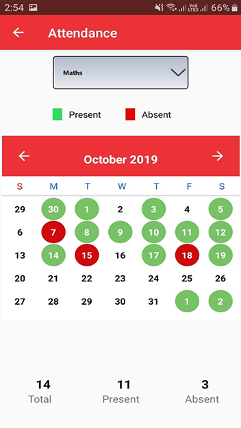 손가락 끝의 일일 과제, 결과, 출석 및 수수료 세부 정보.