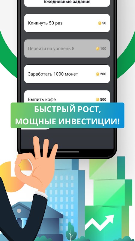 🔹 간단한 메커니즘 - 화면을 탭하여 자본을 늘리세요.