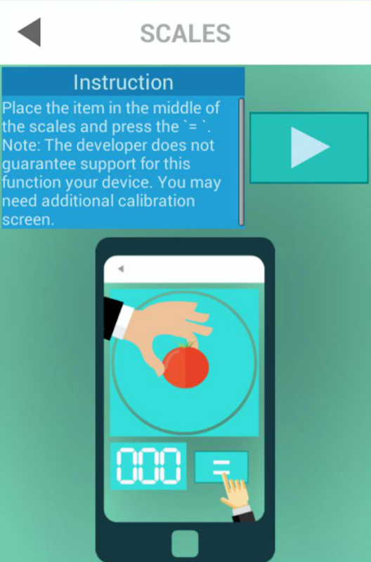 안드로이드에 편리한 소형 저울. 넌 500g (화면)에 따라 어떤 물체의 중량을 결정할 수있다. 약 + -20 그램 - 작은 오류가 있습니다. 개체의 더 둥근 부드러운 모양, 더 정확한 규모는 무게를 표시합니다. 즉 그에게 아주 열심히, 판지 또는 플라스틱 카드의 조각을 화면에 손상을주지 것 - 그것은 또한 저울의 정확도를 증가시킬 것이다. 전 세계의 여러 화면을 눌러 힘의 정의를 지원으로 개발자는, 기기에이 기능의 성능을 보장하지 않습니다. 간단한 무게는 작동하지 않는 경우, 프로그램의 다른 기능을 사용 :