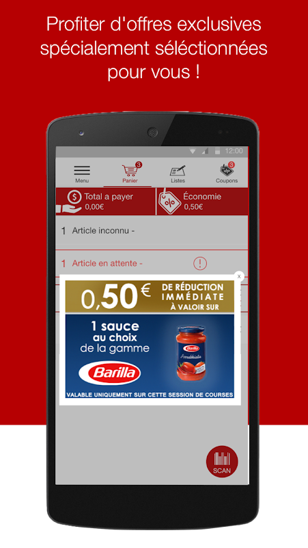 * la possibilité de clôturer votre panier depuis le menu de l'application et payer directement sur une borne dédiée SCAN LIBRE SERVICE